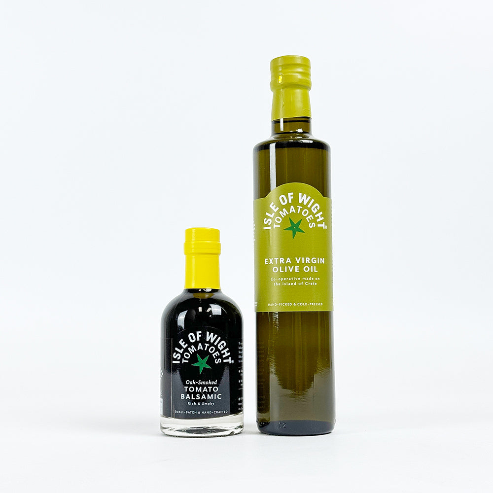 We are offering this limited edition Isle of Wight Tomatoes Dip & Drizzle Pack, which contains 1 x Isle Of Wight Tomatoes Greek Extra Virgin Olive Oil 500ml and 1 x Isle Of Wight Tomatoes Oak Smoked Tomato Balsamic 200ml.