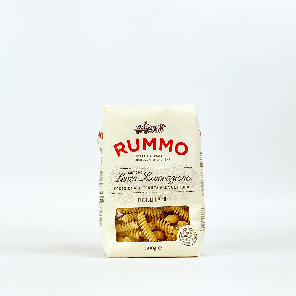 Rummo Fusilli No 48 is a typical pasta shape of southern Italy, where the name and precise shape of the sauce-catching spirals vary from region to region according to local tradition. Delightful to eat and extremely versatile.